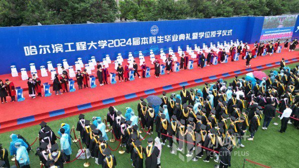 6月23日,哈尔滨工程大学举办2024届本科生毕业典礼暨学位授予仪式。2024届本科毕业生共3432人,分批上台授予学士学位。他们的父母、亲朋、师长、校友共同见证了这难忘的一刻。当天在雨中依然坚持完成了授予学位仪式。之后,毕业生们冒着小雨,在学校精心准备的背景墙上,或签名,或合影,留下了人生重要时刻的影像。